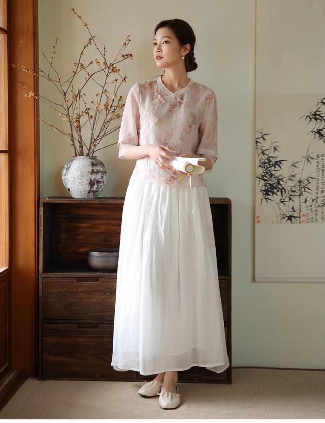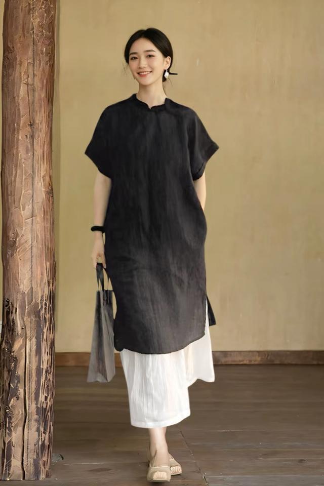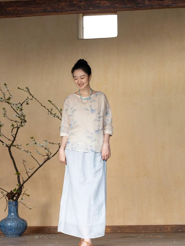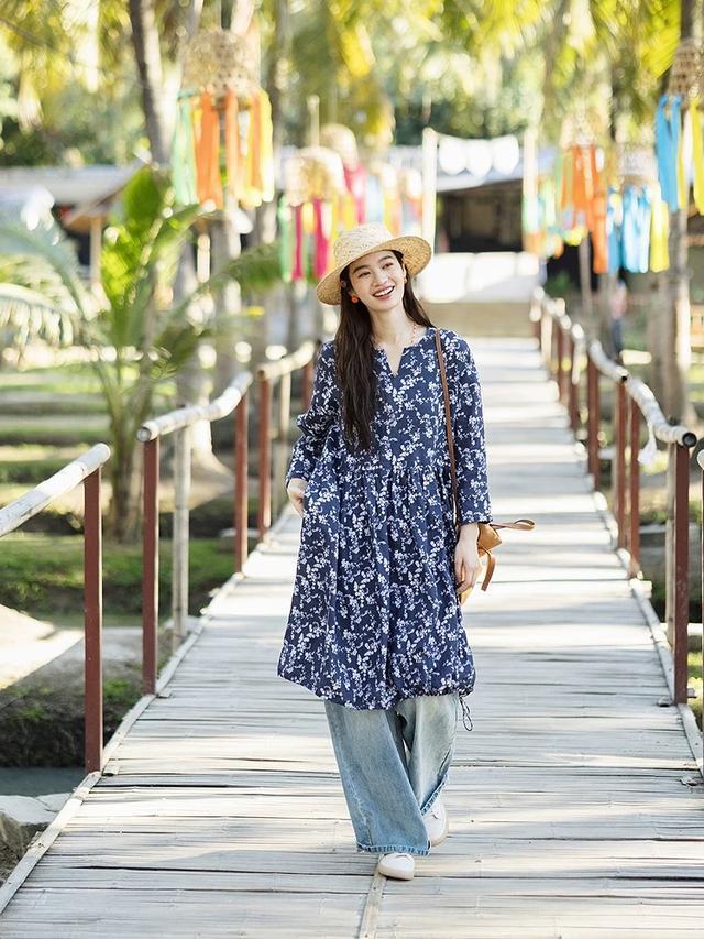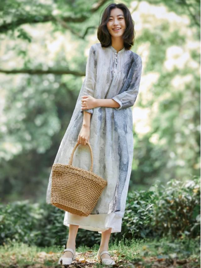 平直换上禅意套裙,裙摆摇旗呐喊,春风灌入衣身,综合线条齐会愈加柔好意思当然,古朴中显现着一点佛系。