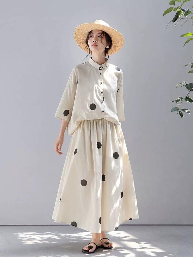 亚麻套裙加入波点,更显俏皮感。