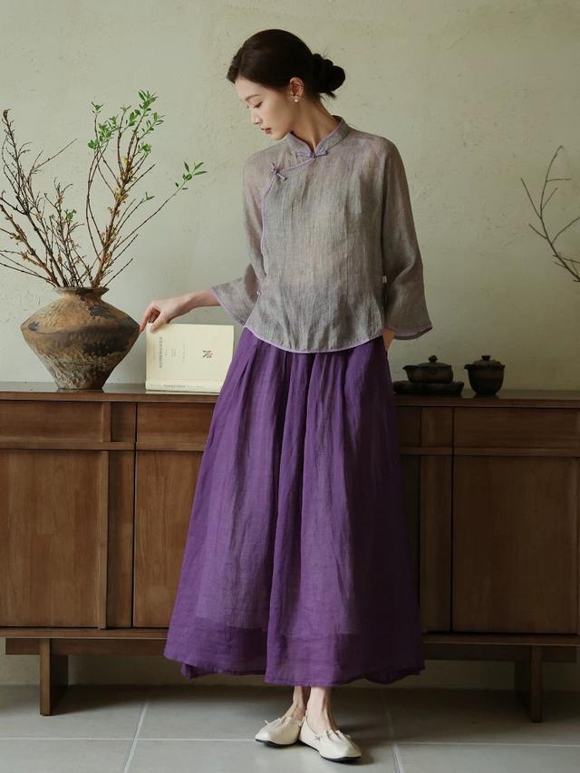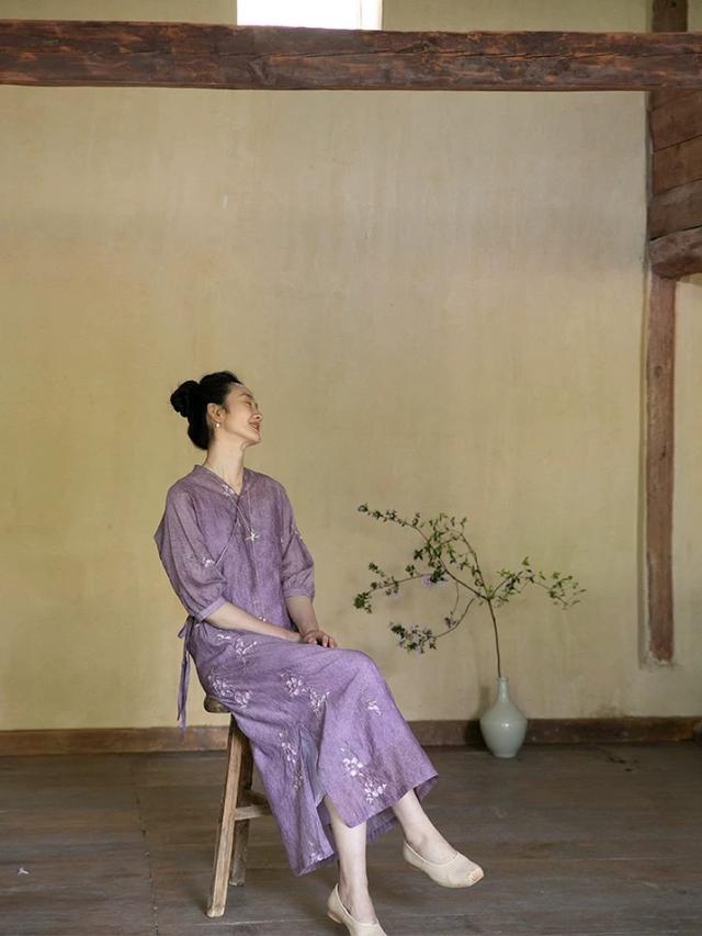 春风乍起,换上一条亚麻长裙,葡萄紫褪色于裙身,和睦衬肤又显耀,六根清净,却有着惊艳之姿。