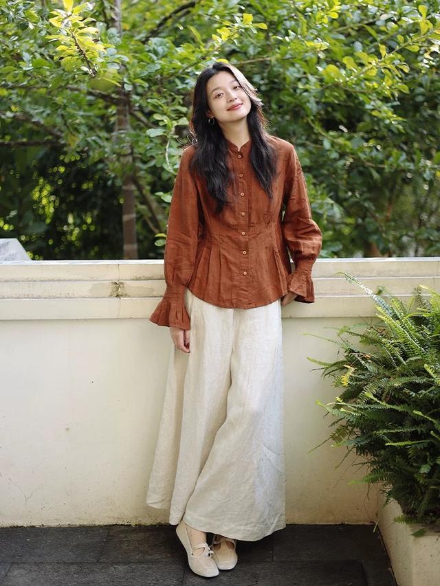 亚麻织带的“皱”,平静又亲肤,让衣服看上去更有肌理感,同期也充满着穿过的陈迹,莫得刻意搭配,只好当然。