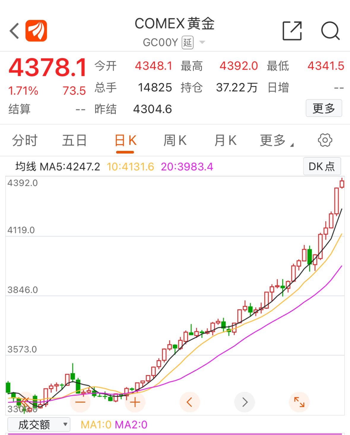 数据自大,为止10月17日7时,国外金价方面,COMEX黄金开盘走高冲突4392好意思元/盎司,链接刷历史新高,国内投资金价非凡了990元/克。年头于今,伦敦现货黄金涨幅已超60%。与此同期,为止10月17日上昼7时,伦敦白银现货价钱达到54.17好意思元/盎司,国内投资银价非凡了12元/克,年内涨幅非凡87%。