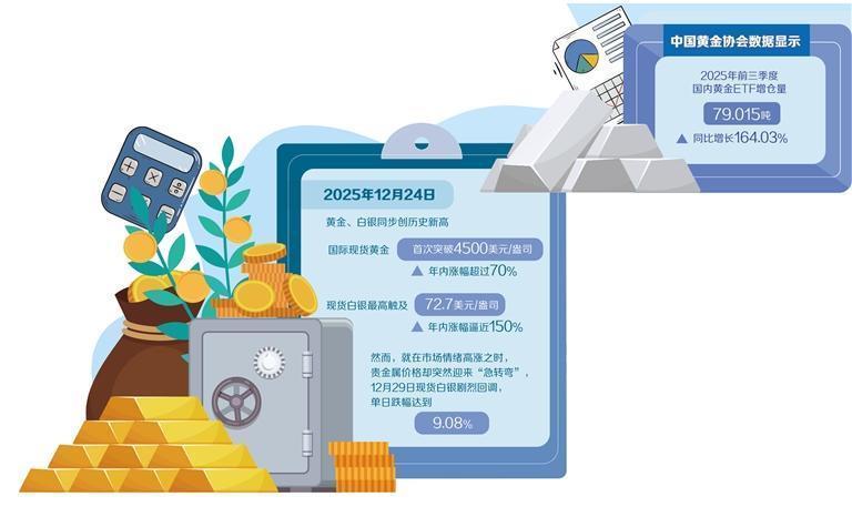 近期,贵金属市集再次成为投资者热心的焦点。2025年12月24日,黄金、白银同步创历史新高,海外现货黄金初次打破4500好意思元/盎司,现货白银最高涉及72.7好意思元/盎司,年内涨幅分手跳动70%和面对150%。但是,就在市集情谊飞腾之时,贵金属价钱却倏得迎来“急转弯”,12月29日现货白银剧烈回调,单日跌幅达到9.08%,市集波动风险突显。